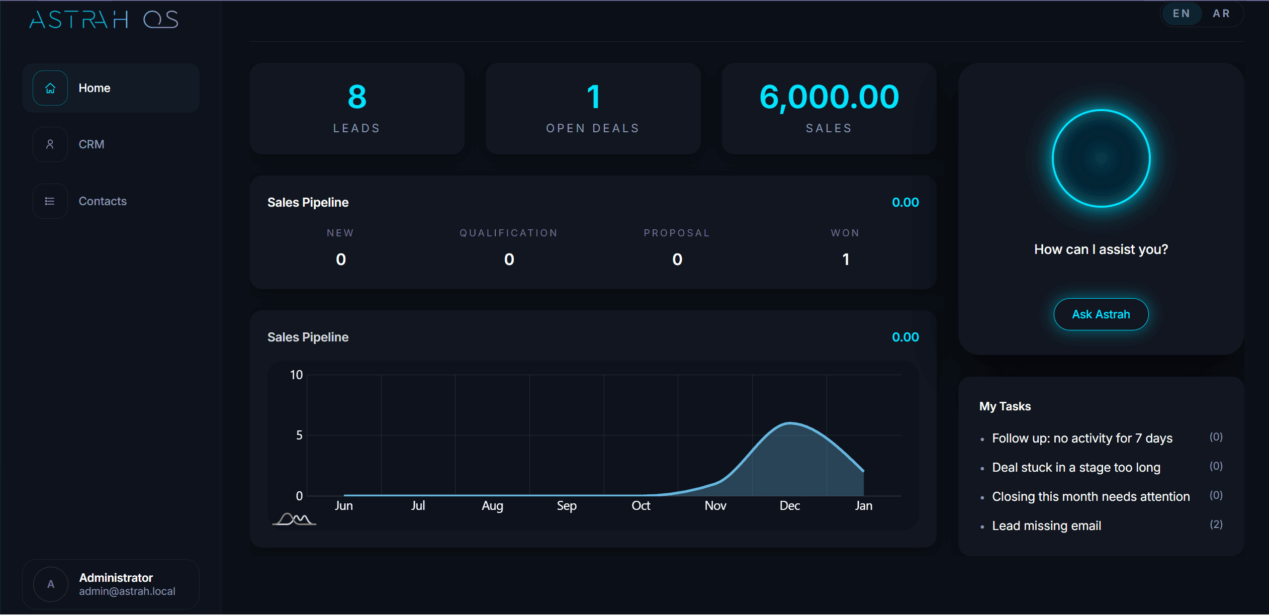 Astrah OS is designed specifically for Saudi Arabia and the GCC, supporting WhatsApp-first workflows, Arabic and English usage, regional practices, and local compliance.